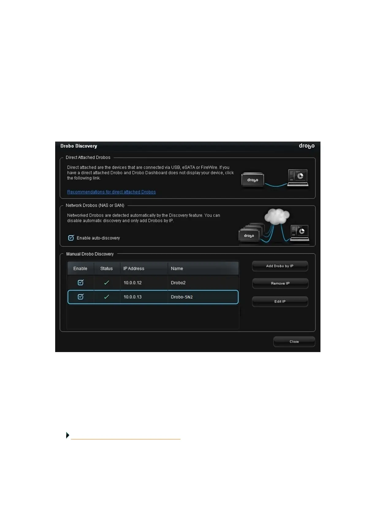 Click the Remove IP button to remove the selected Drobo from the Manual Device