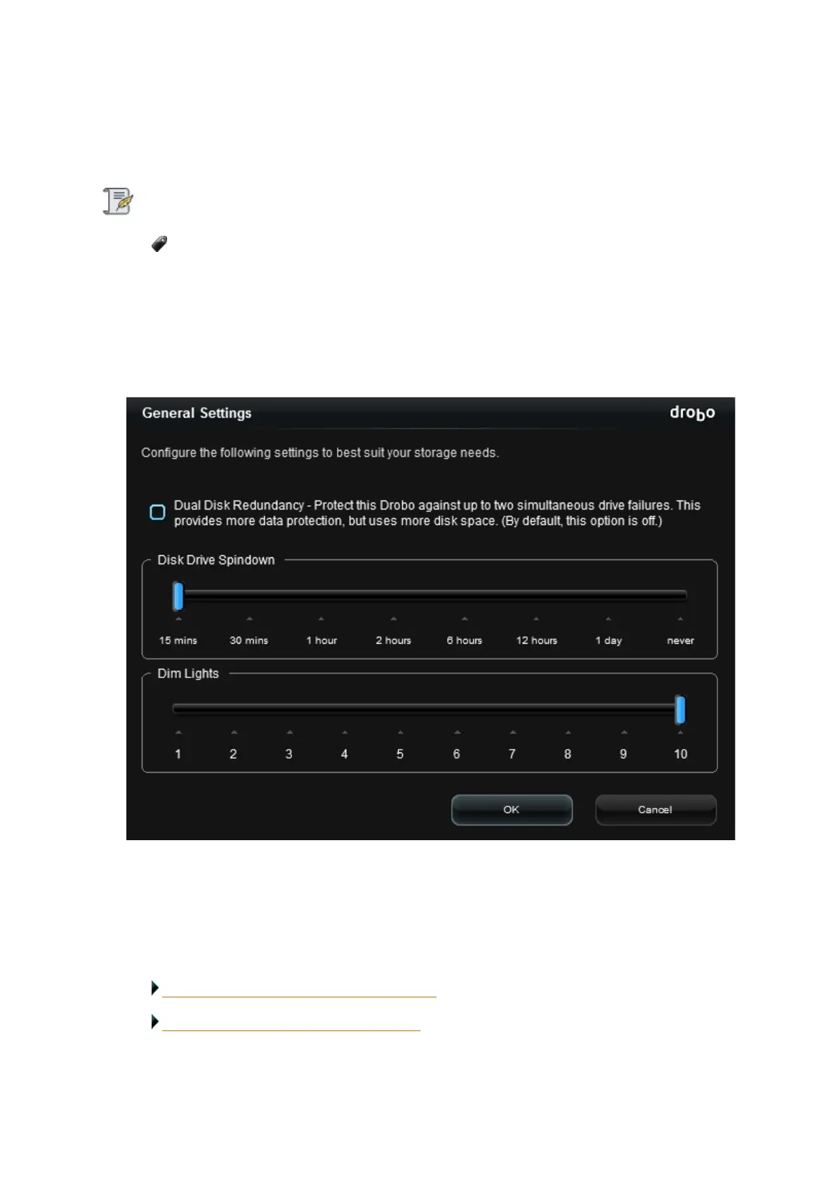 Click the Drobo Settings option on the Navigation menu, and click General. The General