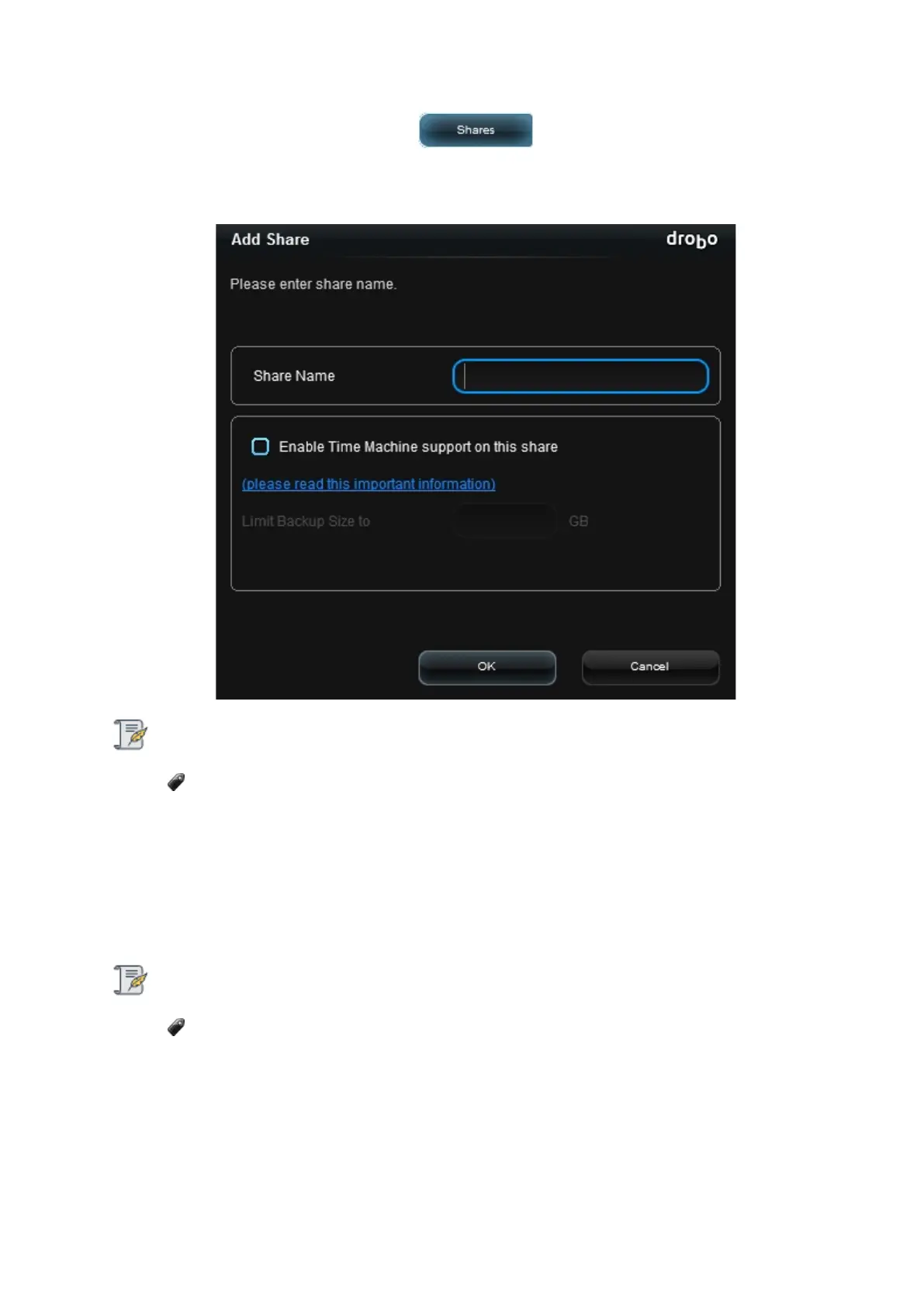 If you decide at a later time to change the size of the Time Machine share, you will need to