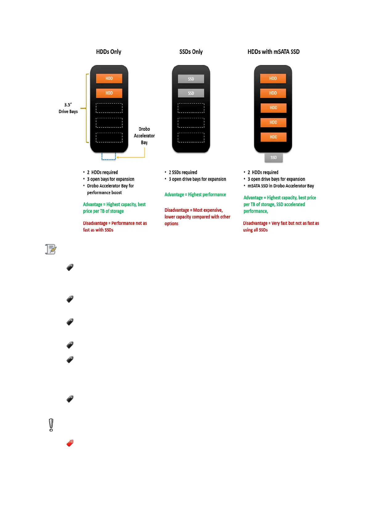 If an incompatible SSD is inserted into the Drobo device, the drive light will blink red,