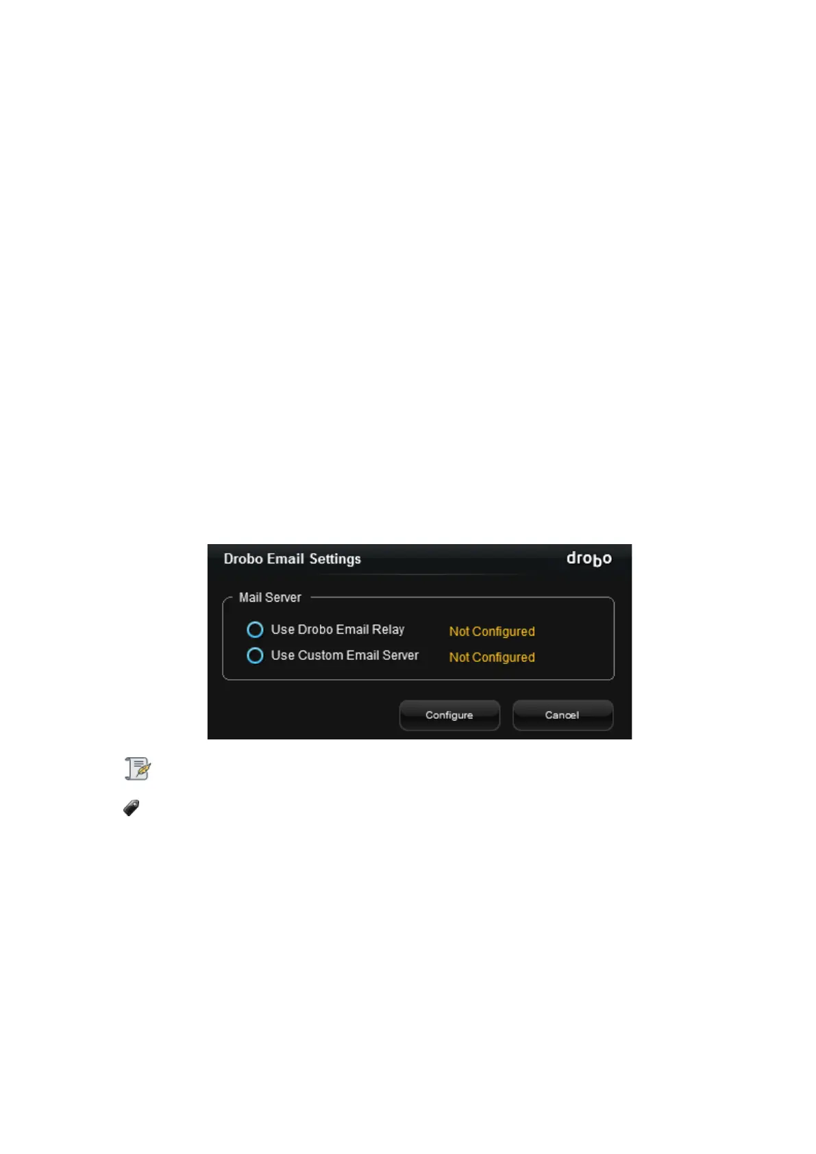 3. Drobo email settings can be configured using one of the two options, Use Drobo Email