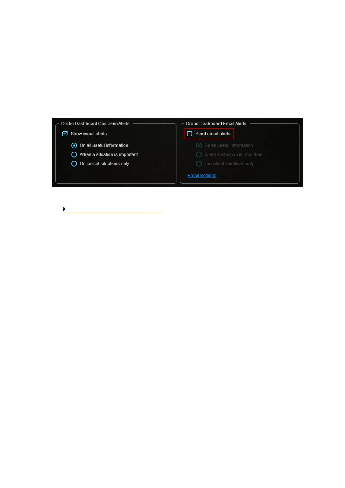 In the Drobo Dashboard Email Alerts area, ensure the Send email alerts check box is cleared.