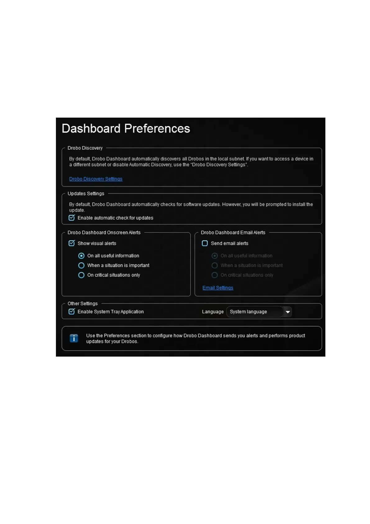 On all useful information – All alerts related to the condition of your Drobo devices will be