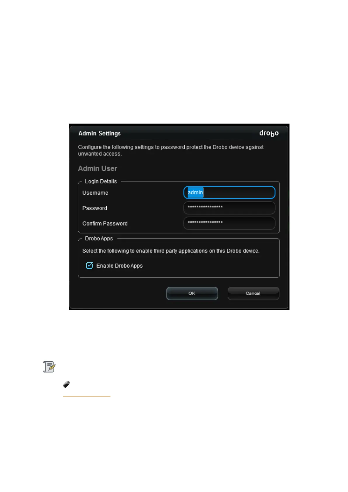 Click the link that reads: Click here to password protect this Drobo. The Admin Settings page