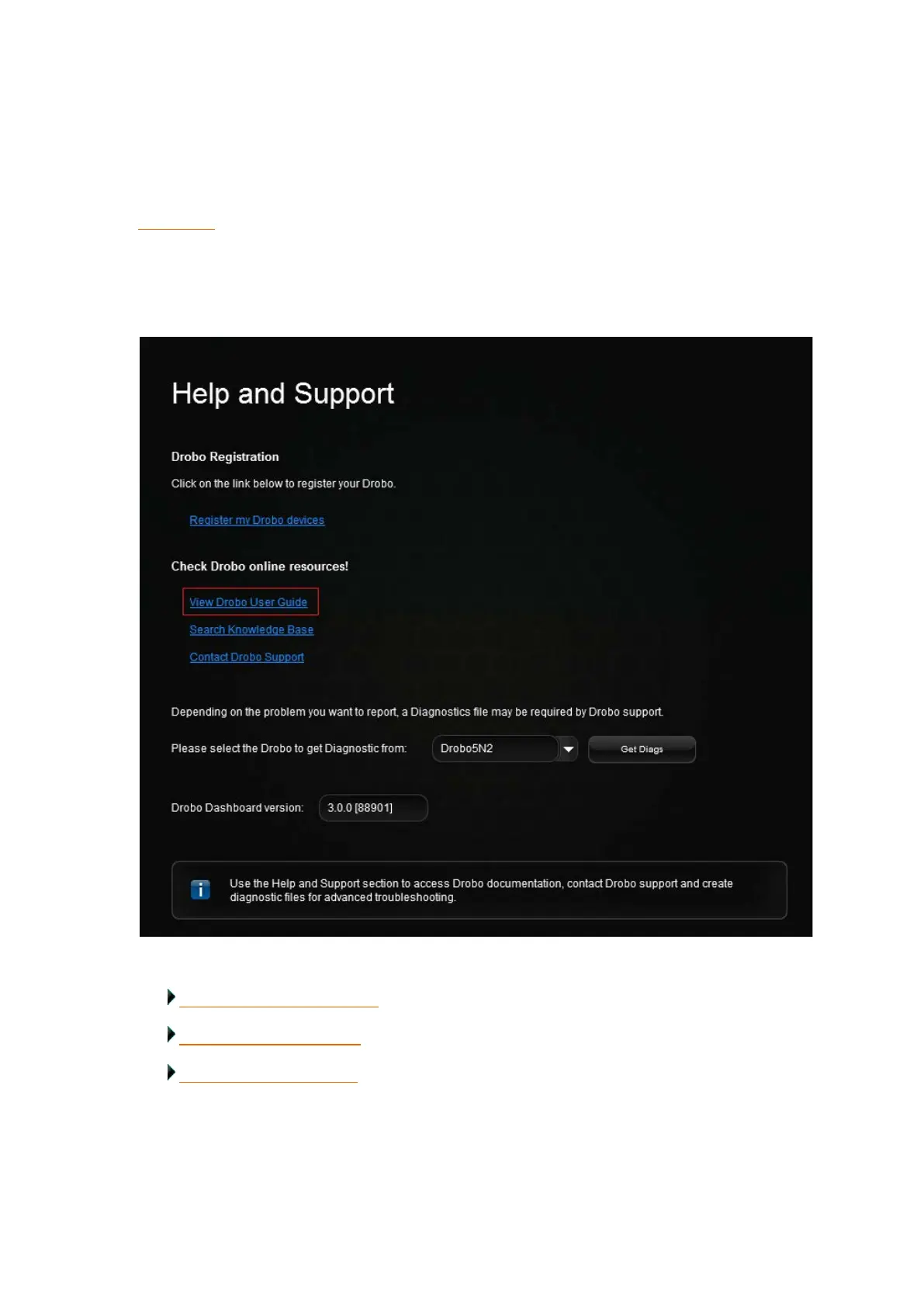 You can also access the user guide from the Drobo Dashboard by clicking the Help & Support