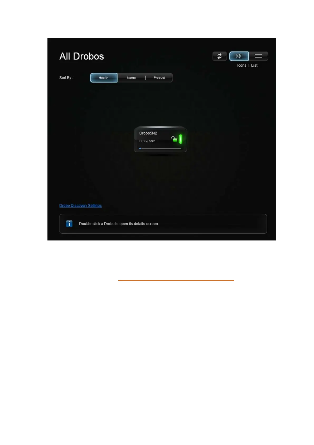 12. If you have no Drobo device connected to the computer or powered on, a "No Drobos Detected"