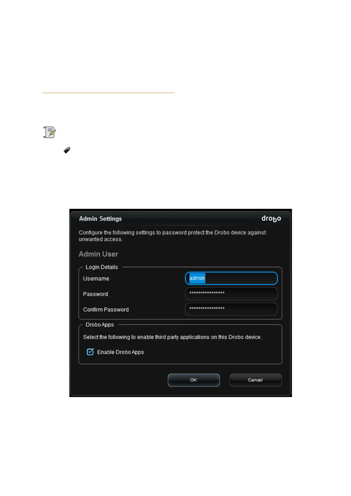 Click the Drobo Settings option on the Navigation menu, and click Admin. The Admin