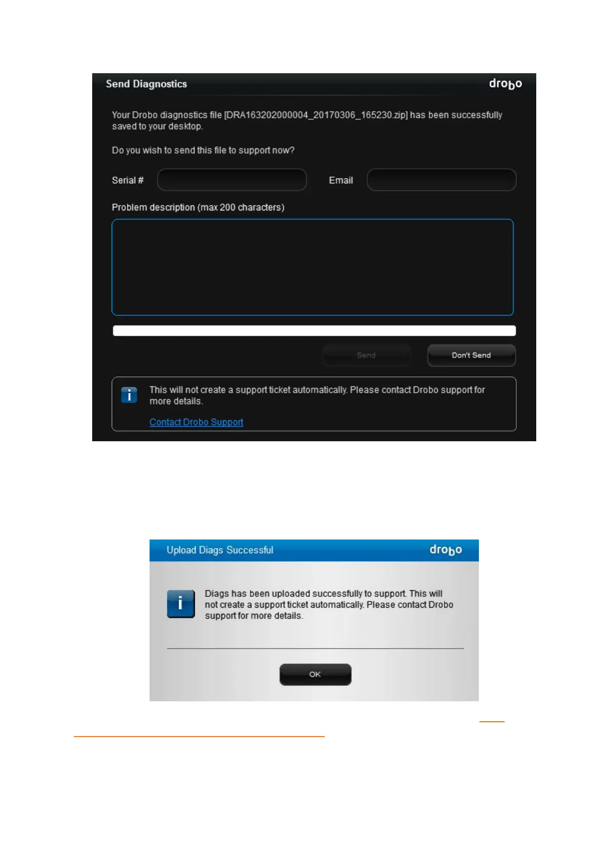 If you cannot generate a diagnostics file because the Drobo device does not mount, see: What