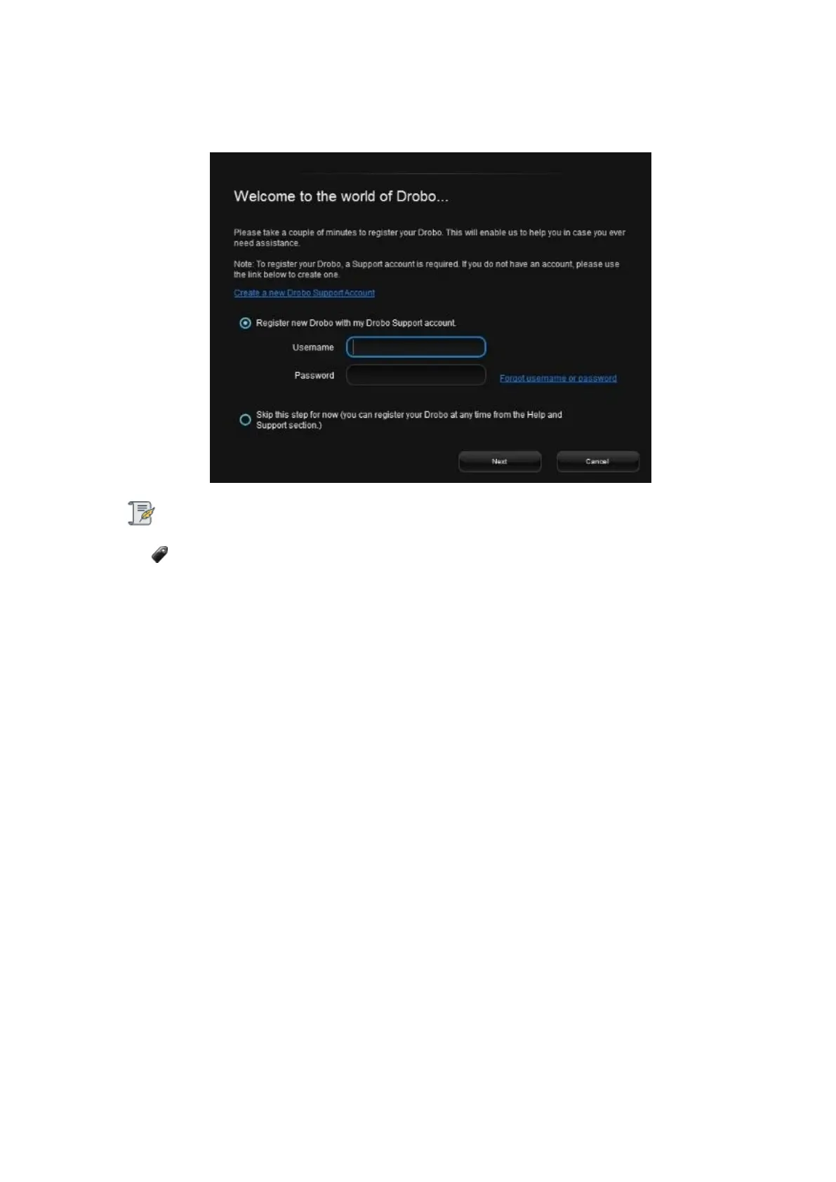 15. The application will prompt you to register the Drobo 8D. You can either register it or skip the