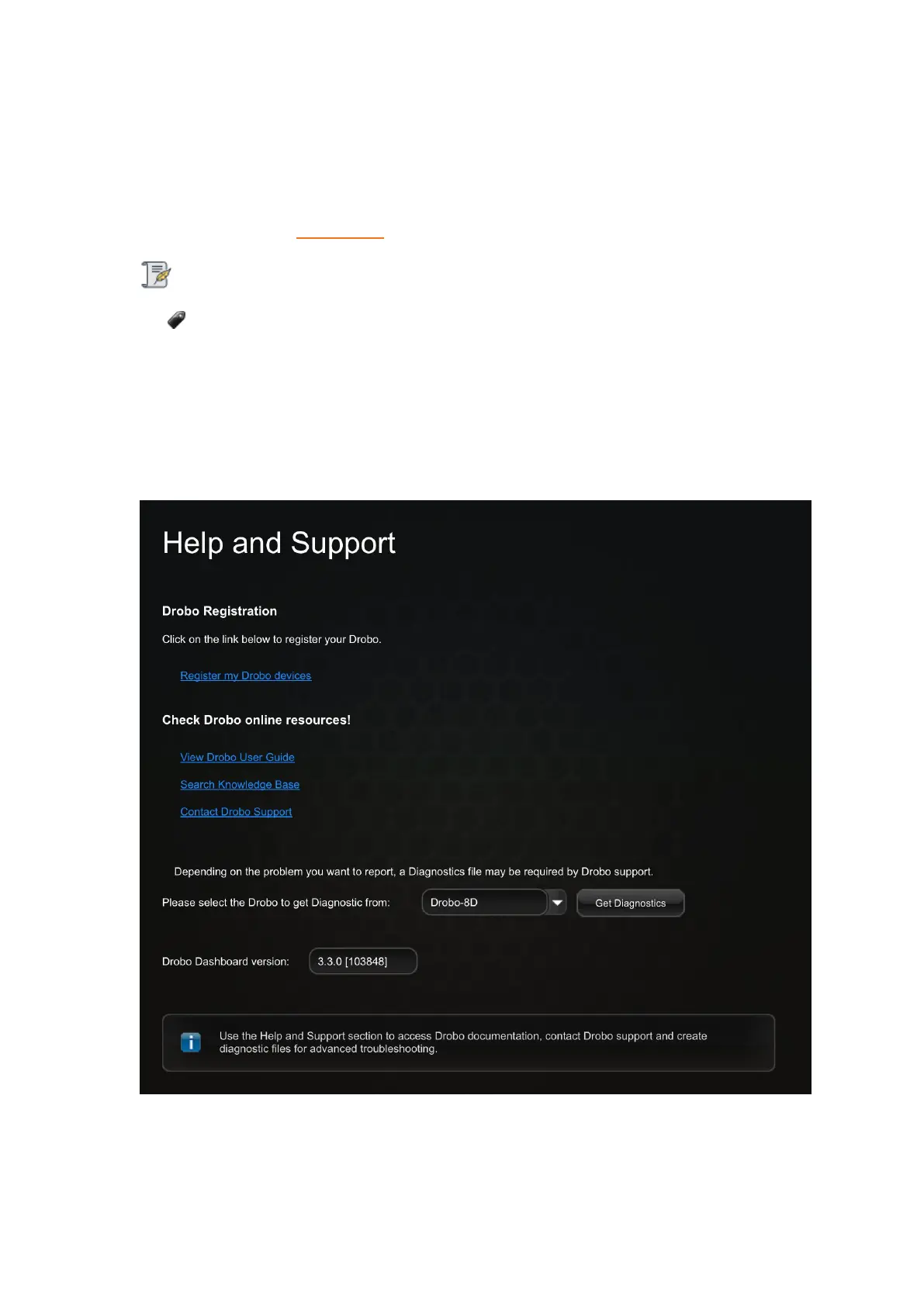 3. From the Drobo Registration area, click on the Register my Drobo devices link to open the