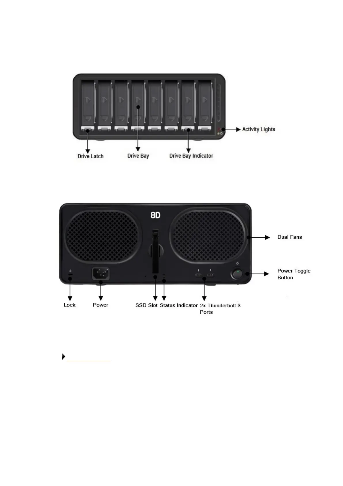 For a quick overview of features of the Drobo 8D, refer to the following images.