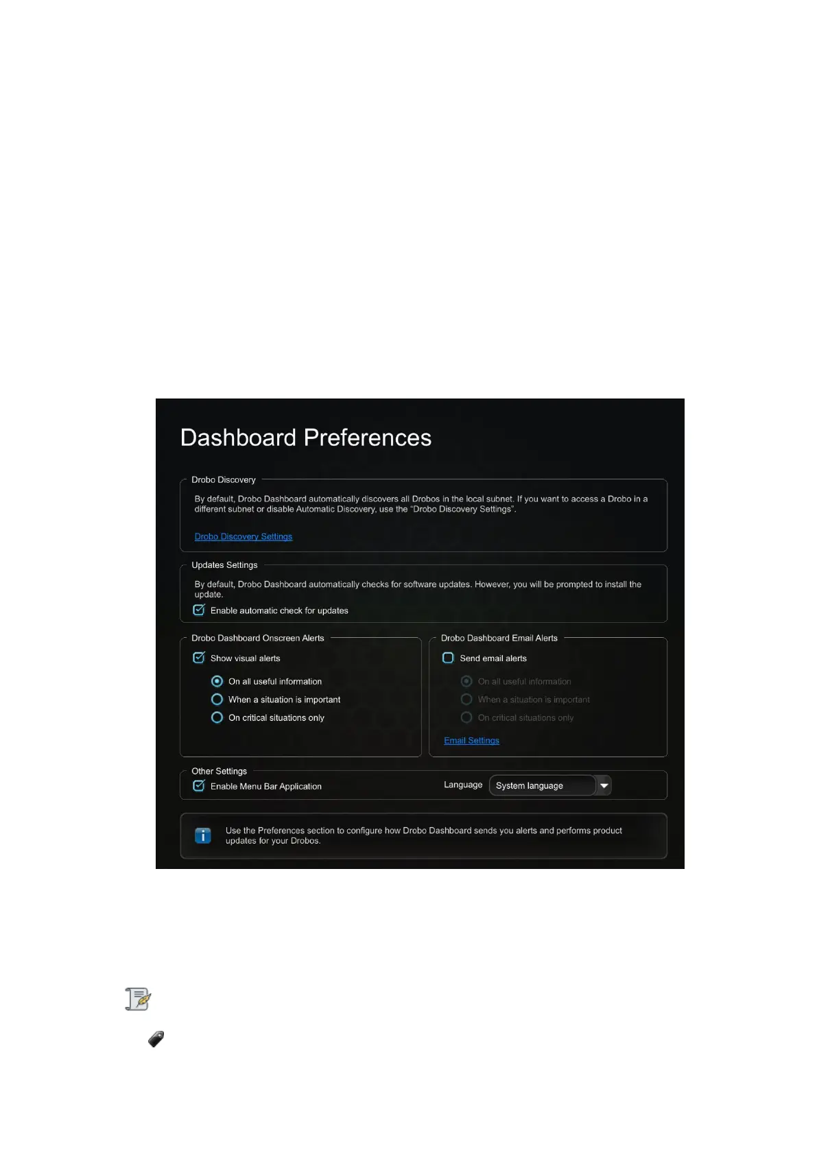 1. Open the Drobo Dashboard and click the Dashboard Preferences option on the Navigation