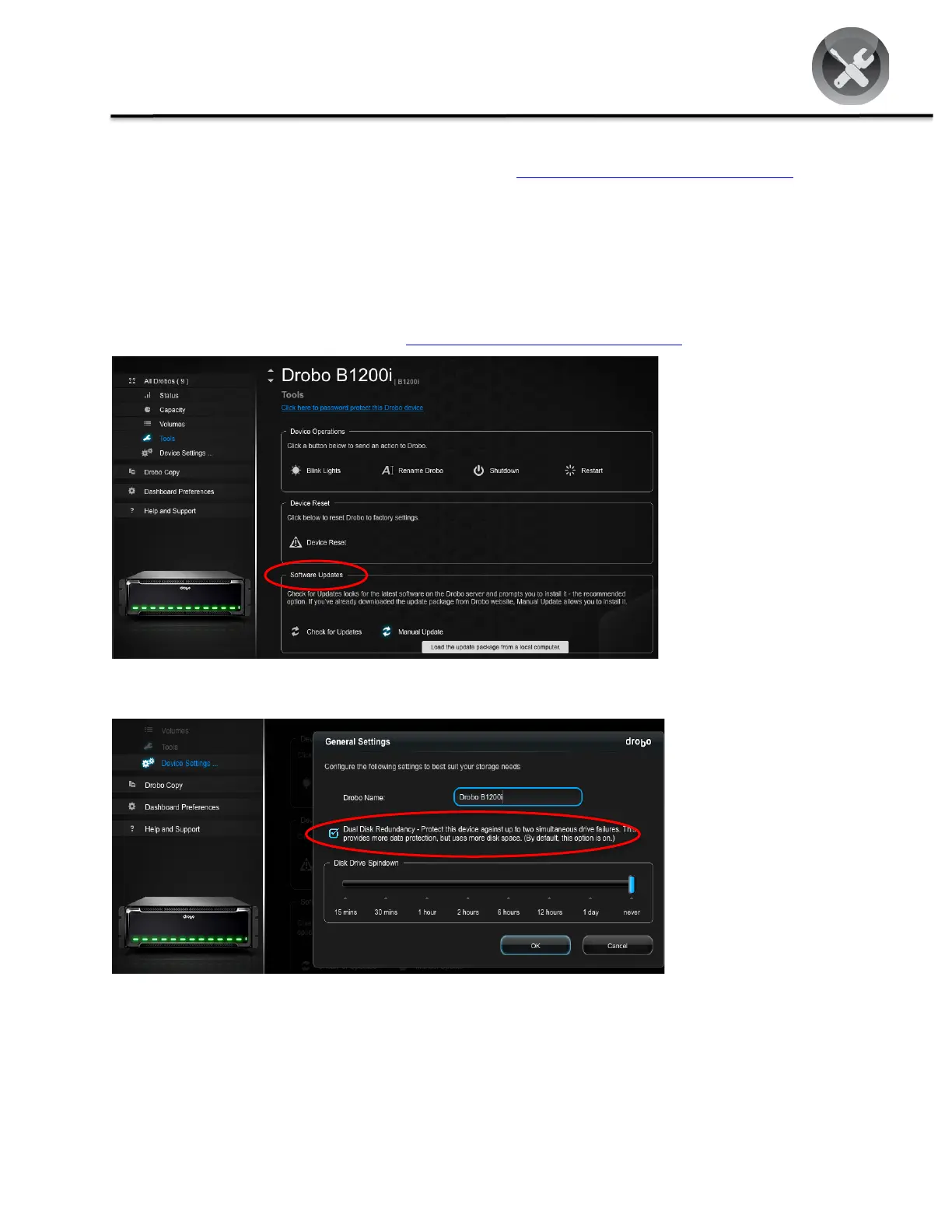 Drobo B1200i - Download and Install Drobo Dashboard; Check Drobo B1200 i Firmware Version; Update Drobo B1200 i Firmware; Configure Dual-Disk Redundancy