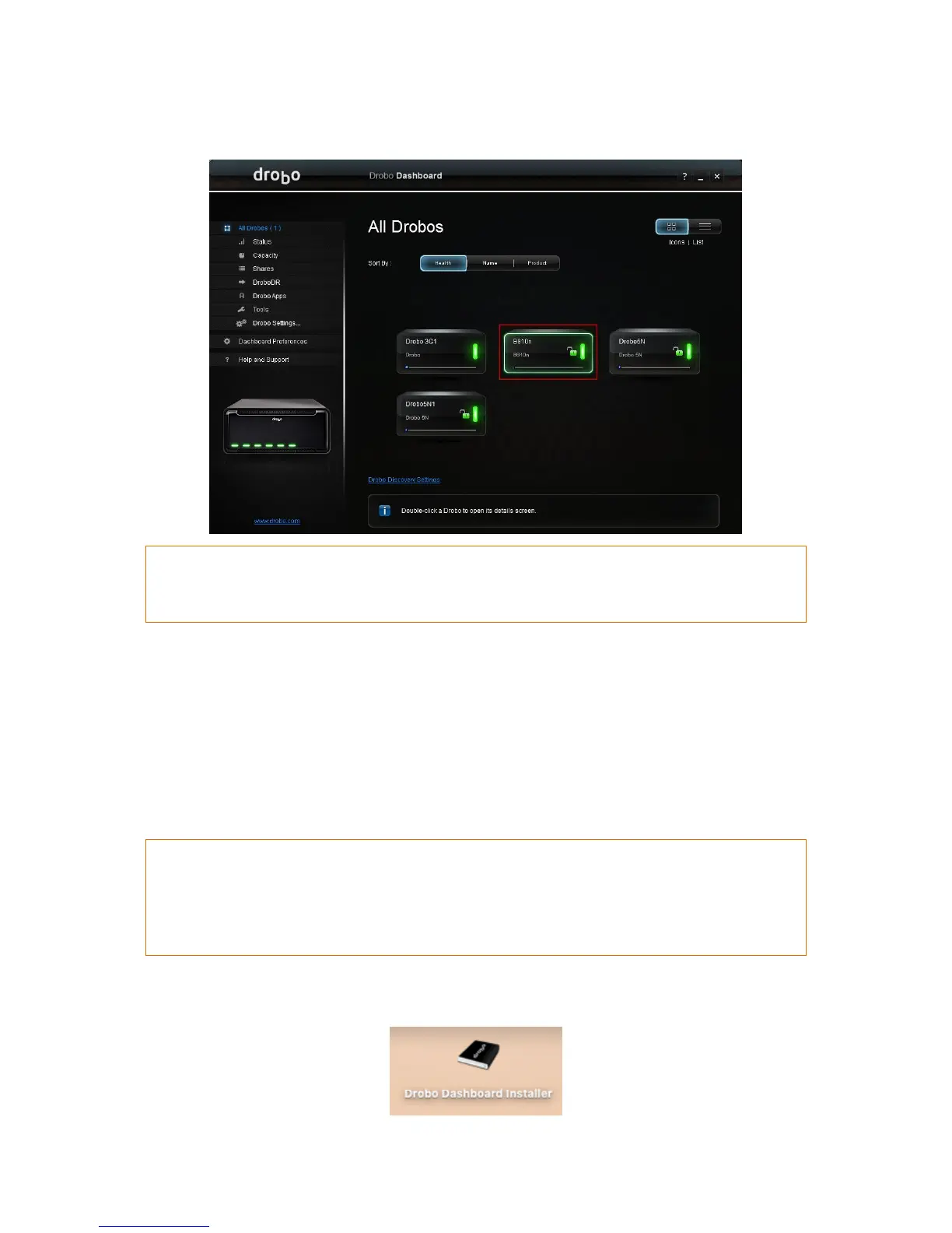 must uninstall the Drobo Dashboard prior to installing the latest version. For more information, see
