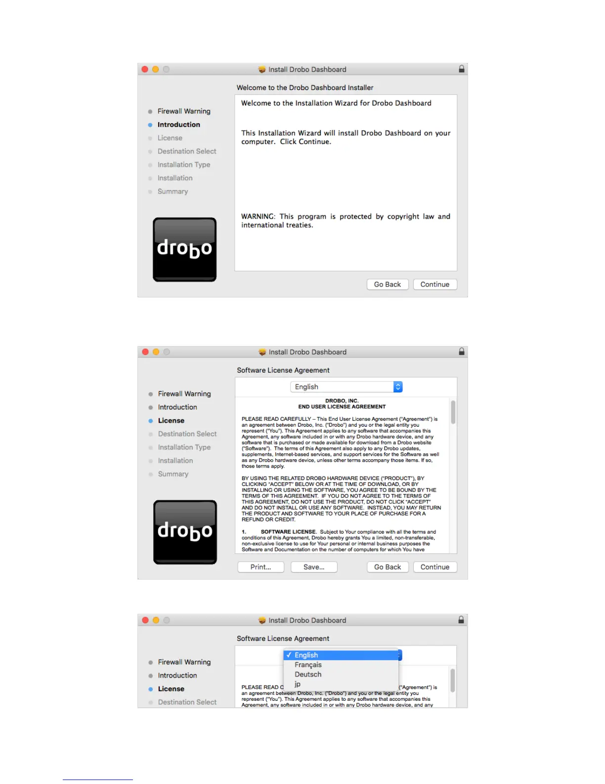 6. The Software License Agreement page appears. From here, you can choose the language in