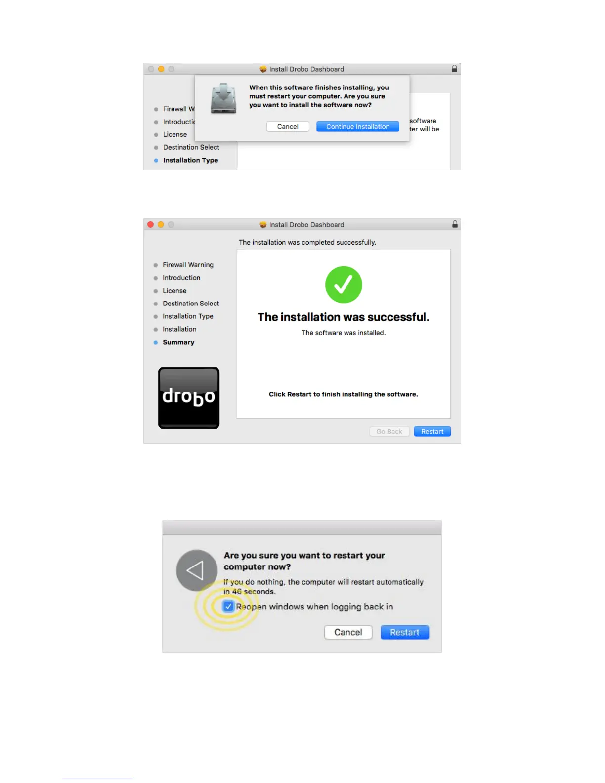 13. The Drobo Dashboard installer will prompt you to restart your computer. When the window