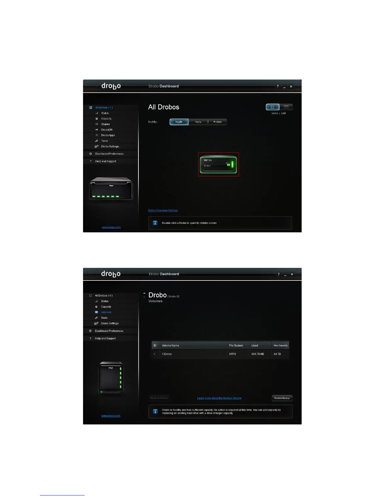 1. Open the Drobo Dashboard, and wait for your Drobo B810n to appear under in the All Drobos