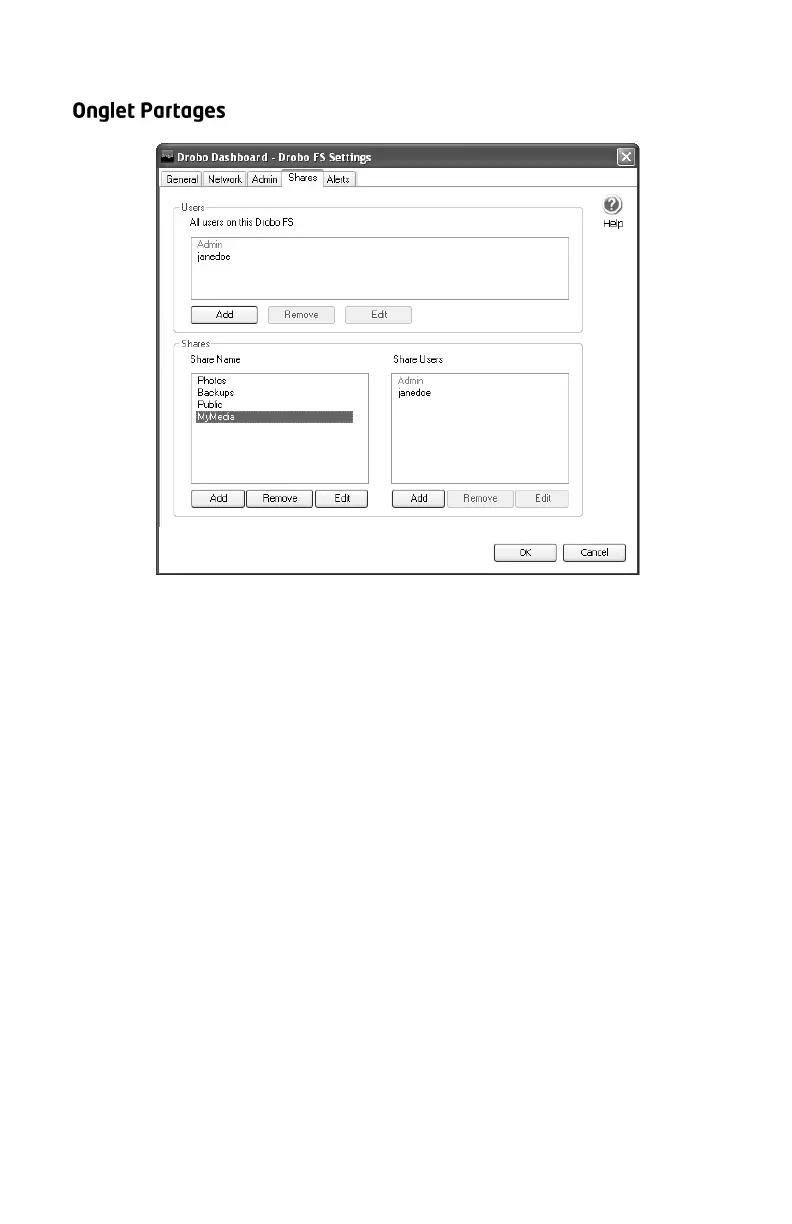 Drobo FS. Pour gérer les partages sur votre Drobo FS, vous devez d'abord