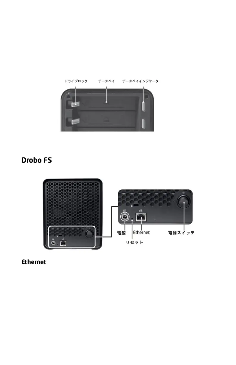 Drobo FS は、Ethernet ポートを使ってネットワークに接続します。