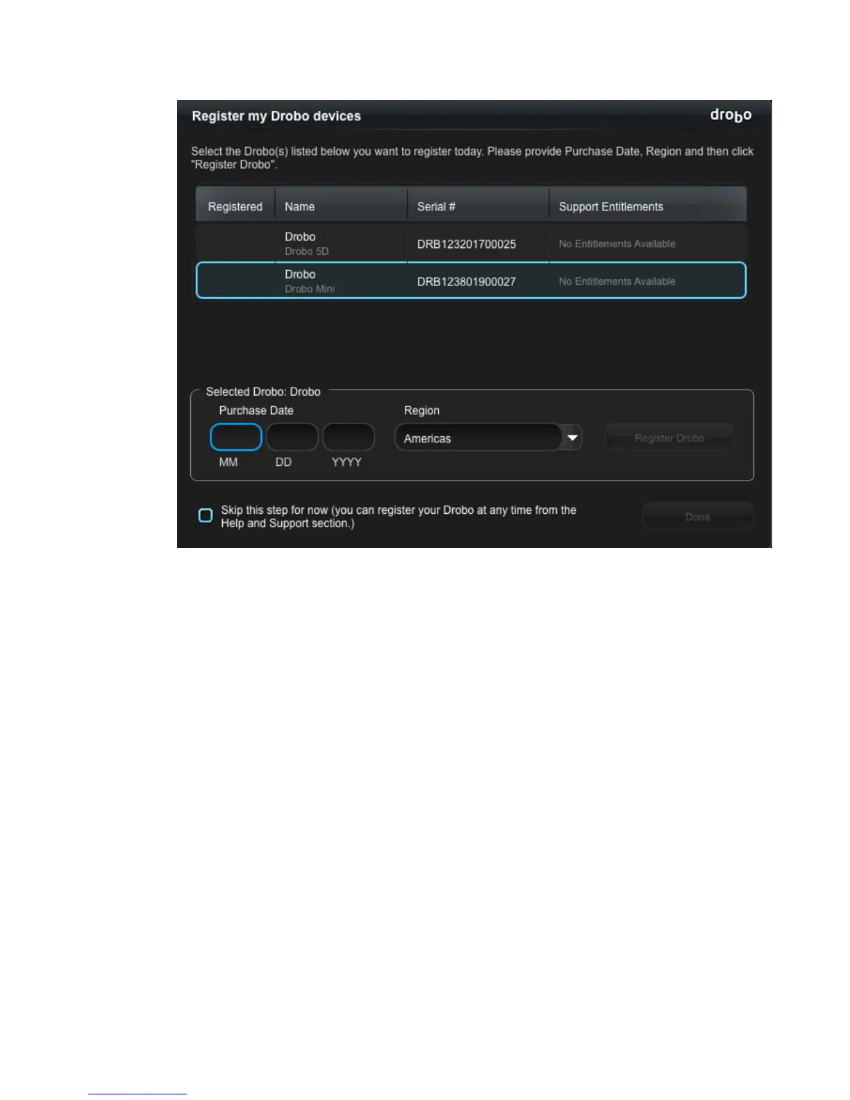 7. Repeat steps 5 and 6 to register additional Drobo devices.