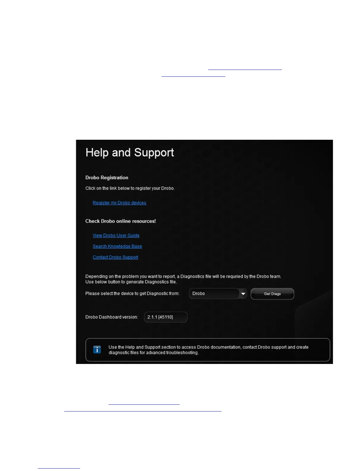 user guide and knowledge base, contact the Drobo support team and create a diagnostics