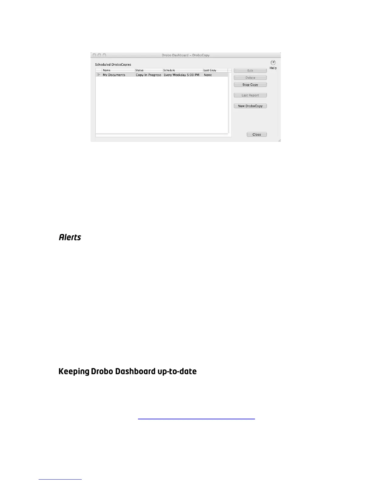 Note: Drobo Dashboard must be running for alerts to work.