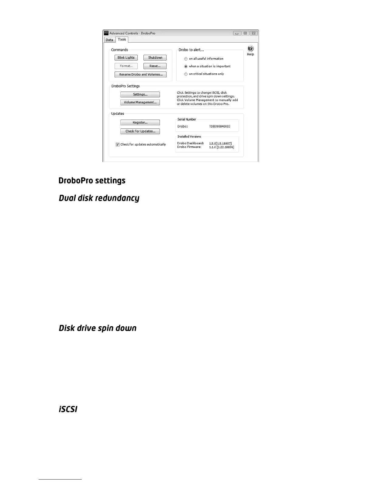 Controls > Tools tab and click the Settings button in the DroboPro