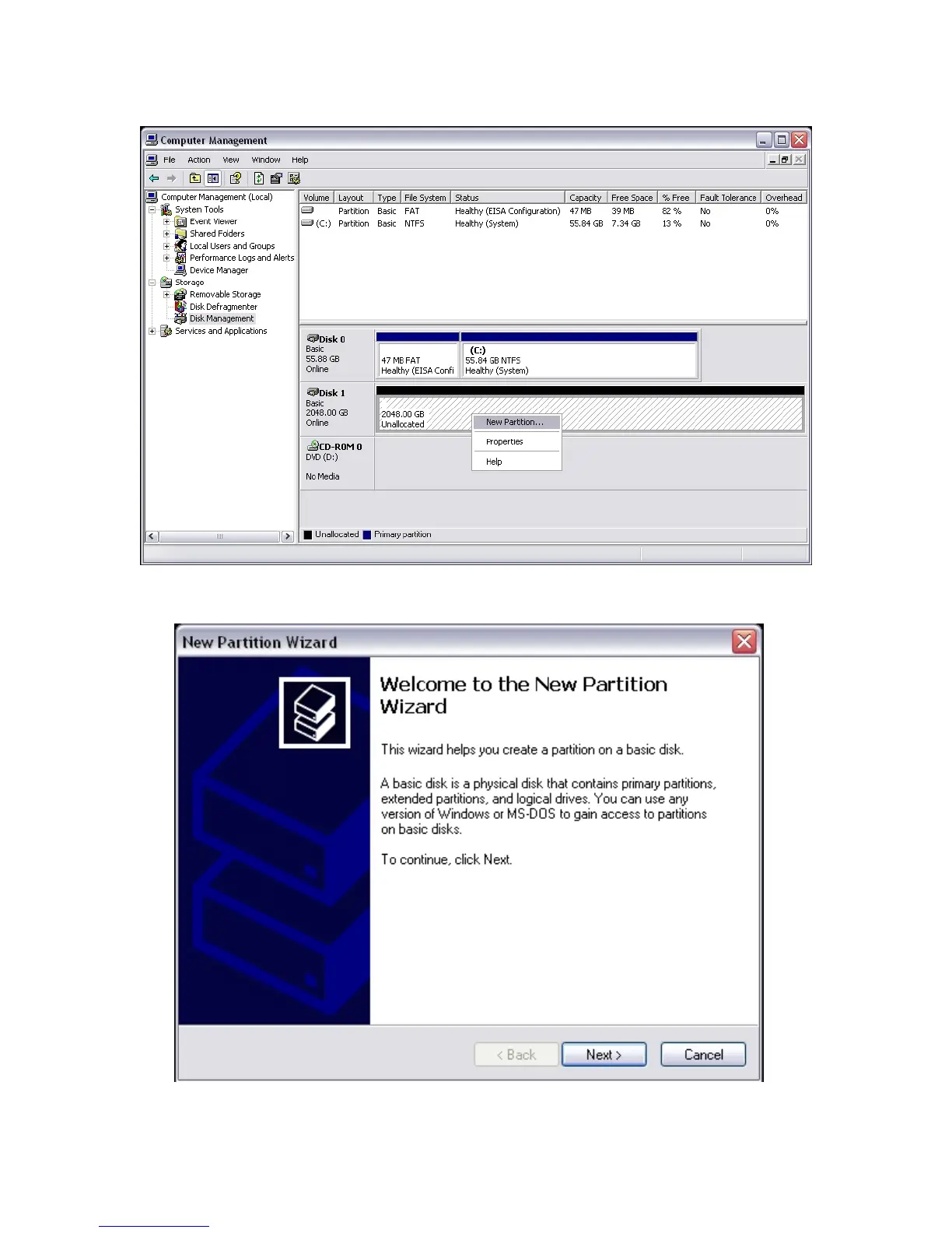 8. The New Partition Wizard will launch. Click Next.