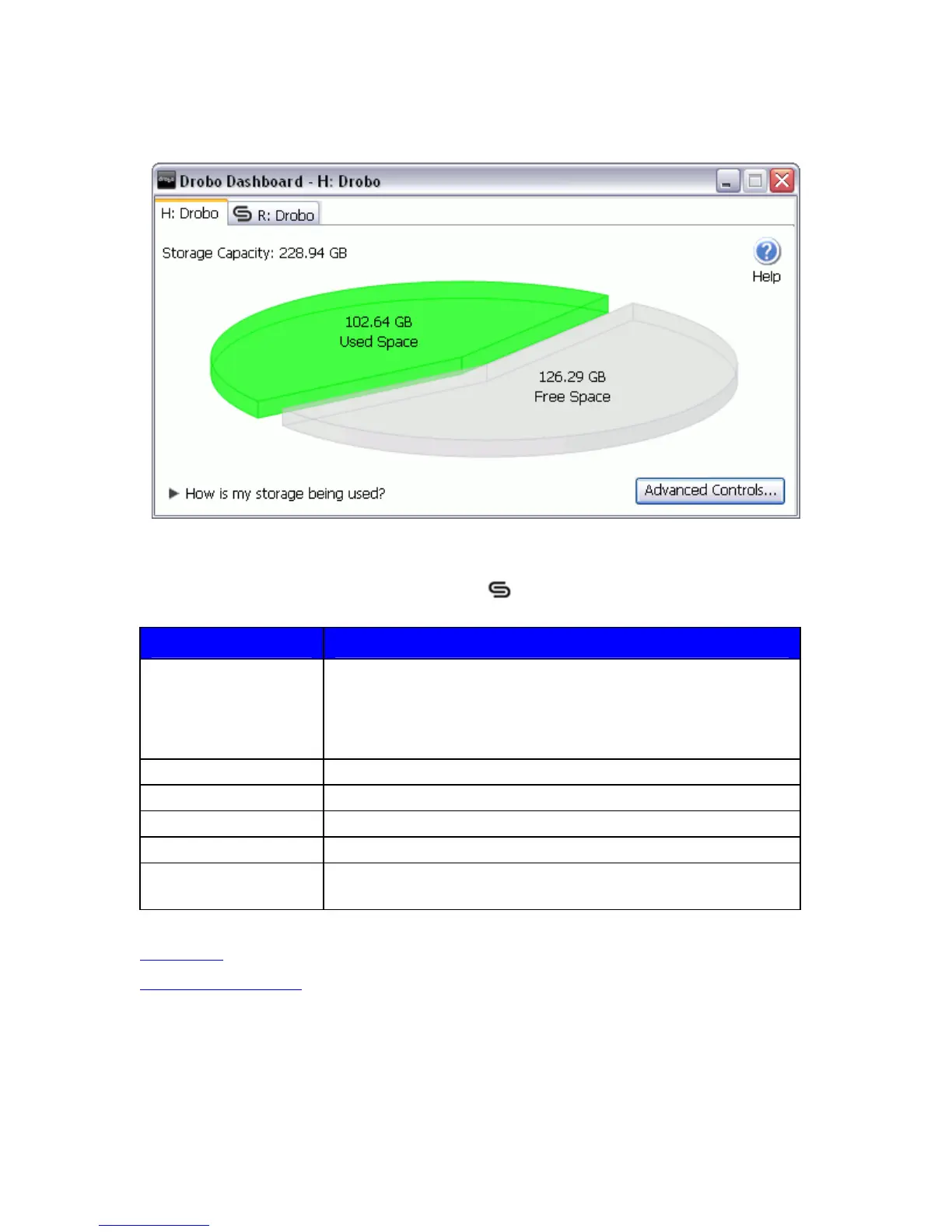 Advanced Controls Click to access Drobo's Advanced Control Panel.