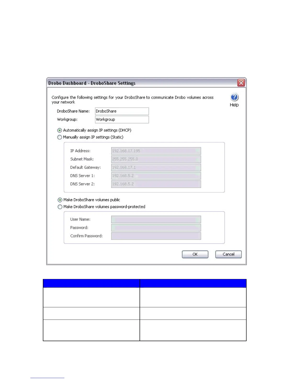 DroboShare Name Identifies the DroboShare on your network.
