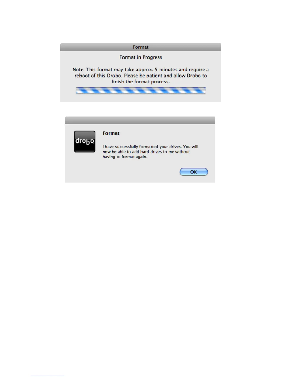 additional capacity. Once formatted, Drobo will handle formatting any new hard drives that you may add to it