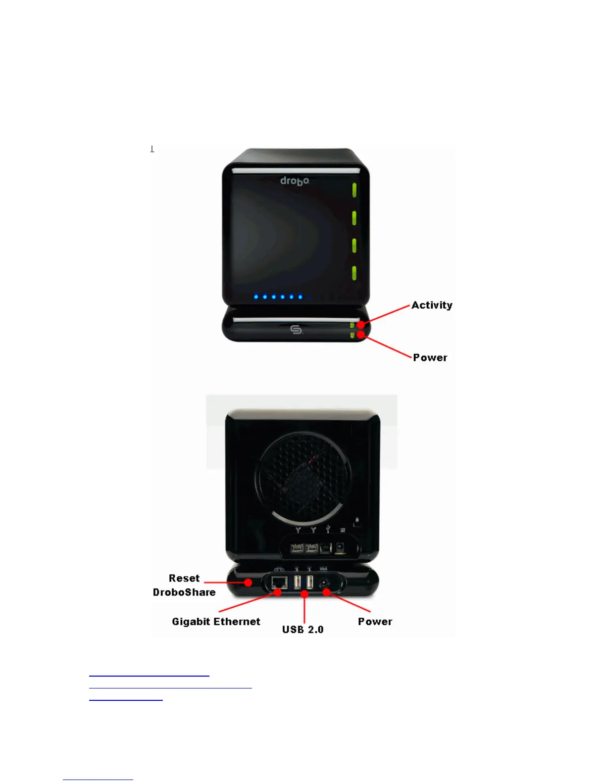 DroboShare is a simple, plug and play companion to Drobo. Take some time to familiarize yourself with how Drobo and