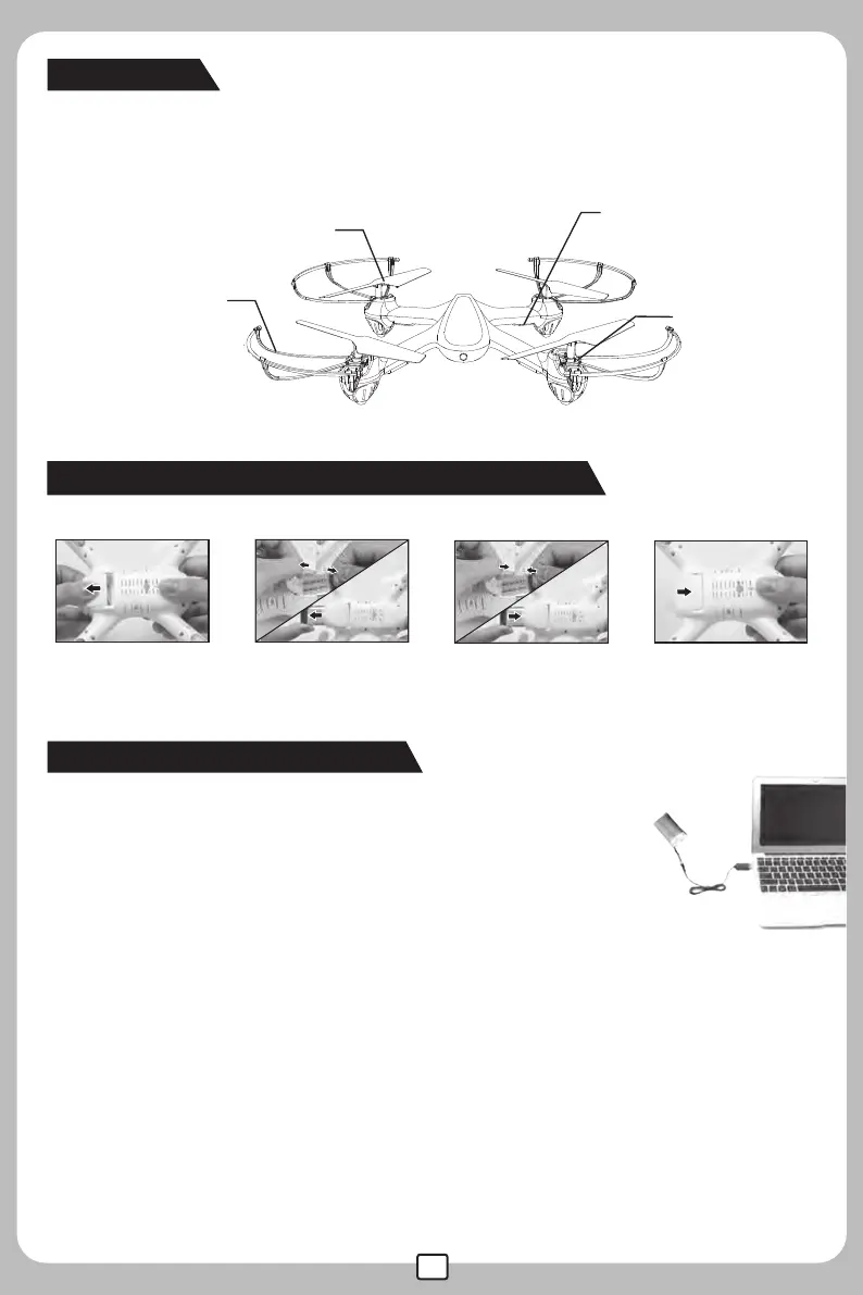 DROCON X708 - The Drone; How to Change New Battery for the Drone; Major Parts of the Drone