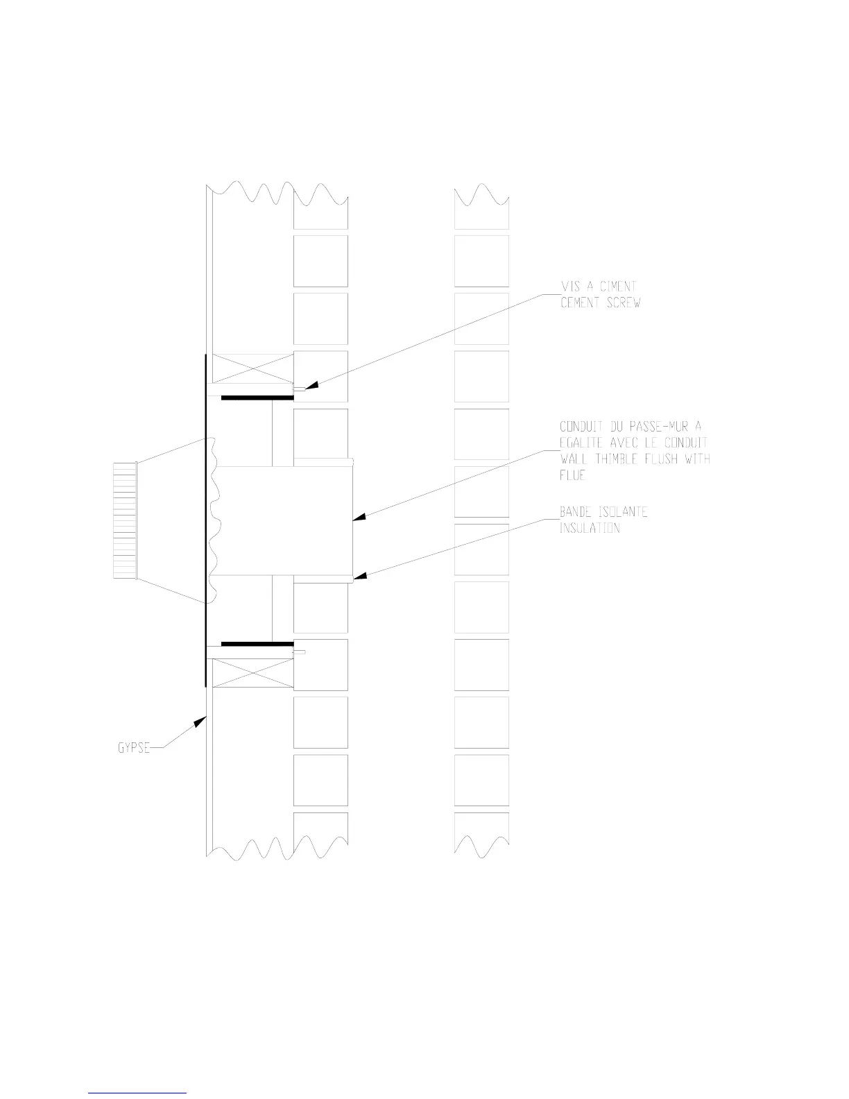 Drolet Adirondack - Brick Thimble Installation; Brick Thimble Diagram and Clearances