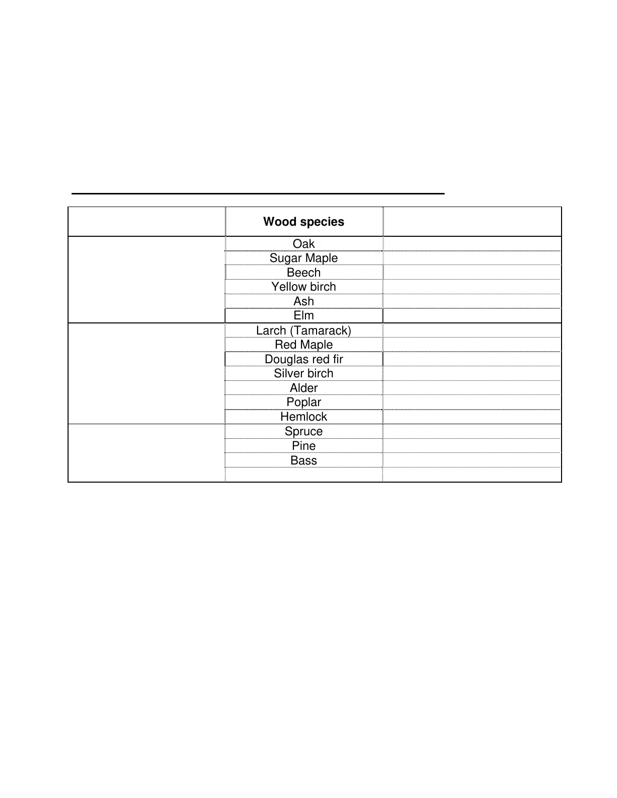 Wood species