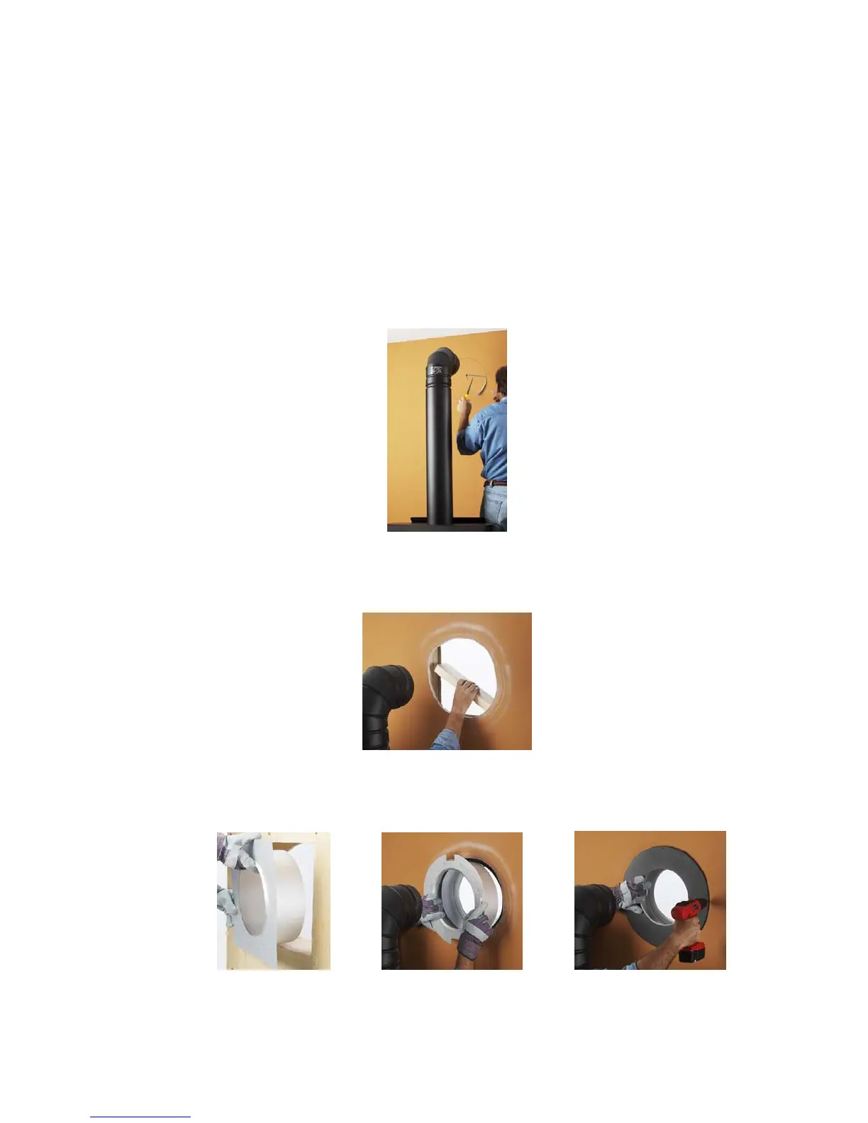 chimney and any combustible materials. For concrete walls, cut a hole slightly larger than the outer