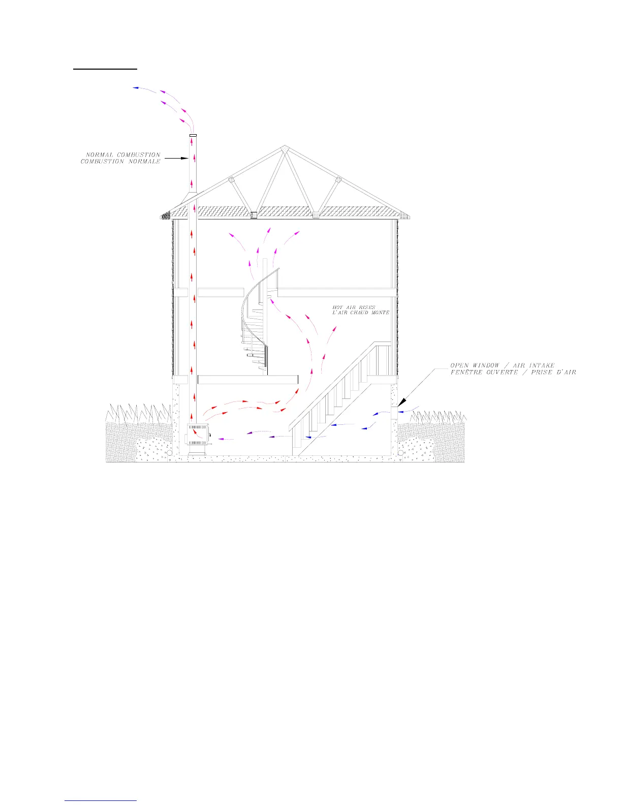 DRAWING #1 shows a stove functioning under normal and adequate conditions. Heat rises to the upper