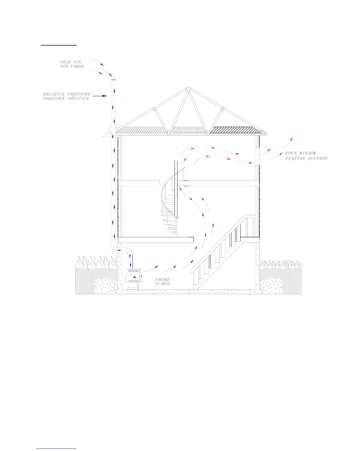 DRAWING #2 shows the effect of a cold chimney. Cold air creates a reverse draft (negative pressure),