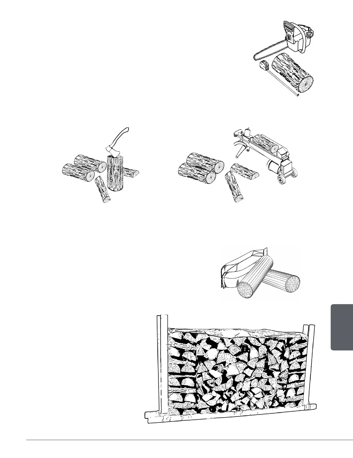 Wood should be split to a range of sizes, from about 3" to 6" (75 mm to 150 mm) in