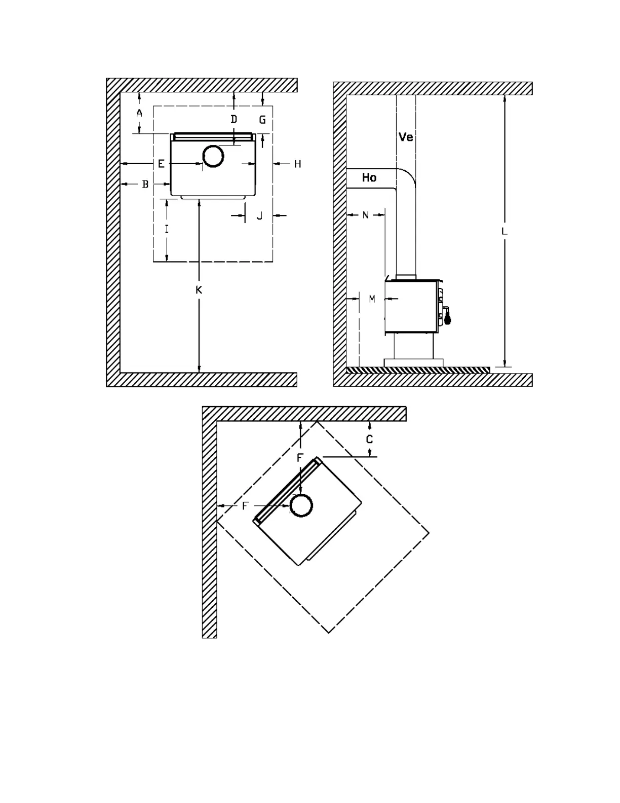 Figure 2: Clearances to combustibles and floor protector