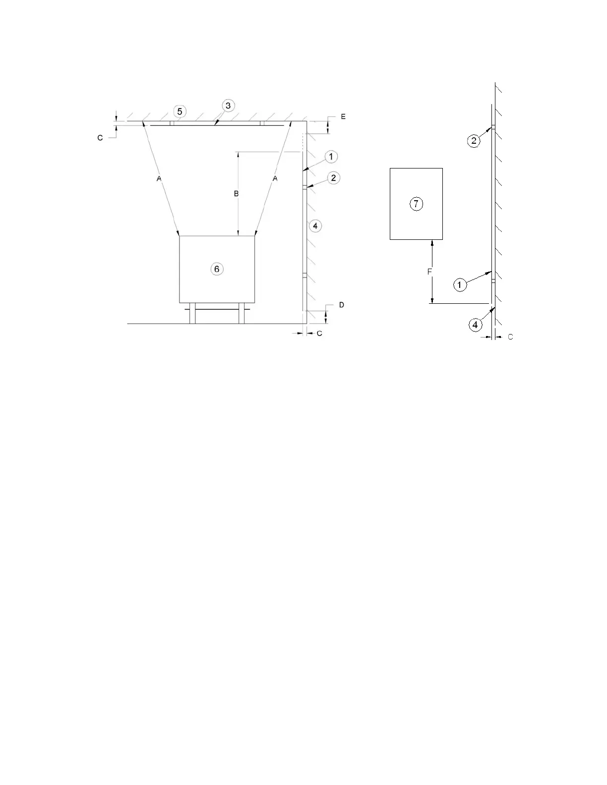 B- 20 in. (500 mm) minimum;