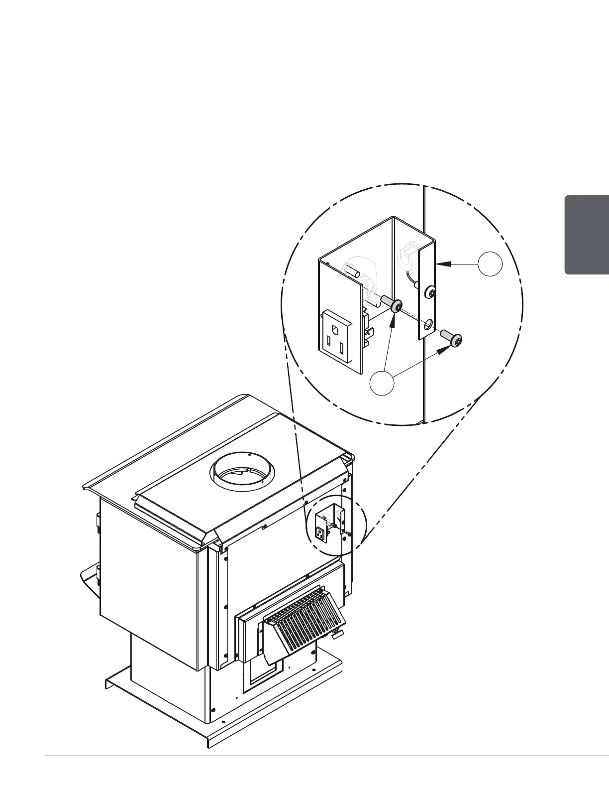 Screw the thermodisc (C) with the screws (D) provided on the back of the stove.