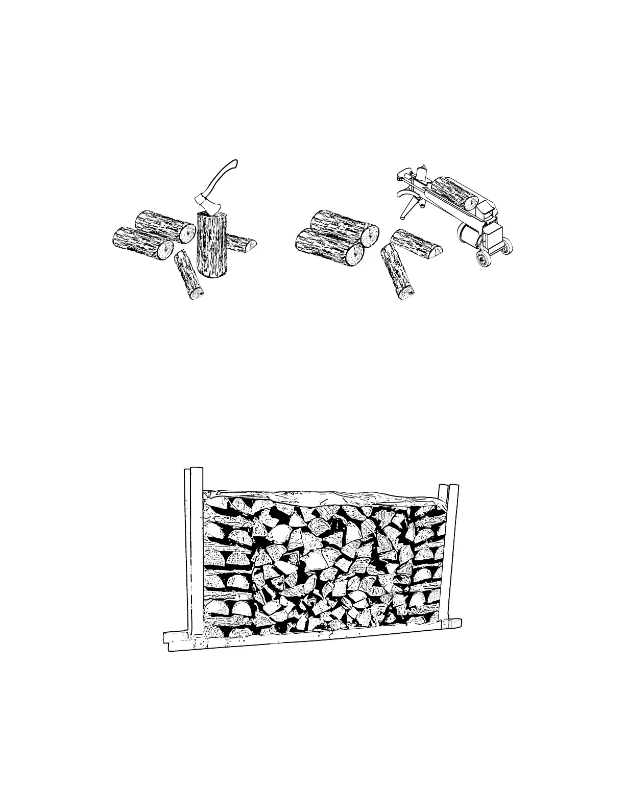 the sharp edges where the flames first catch. Logs as small as 3" (76 mm) should be split