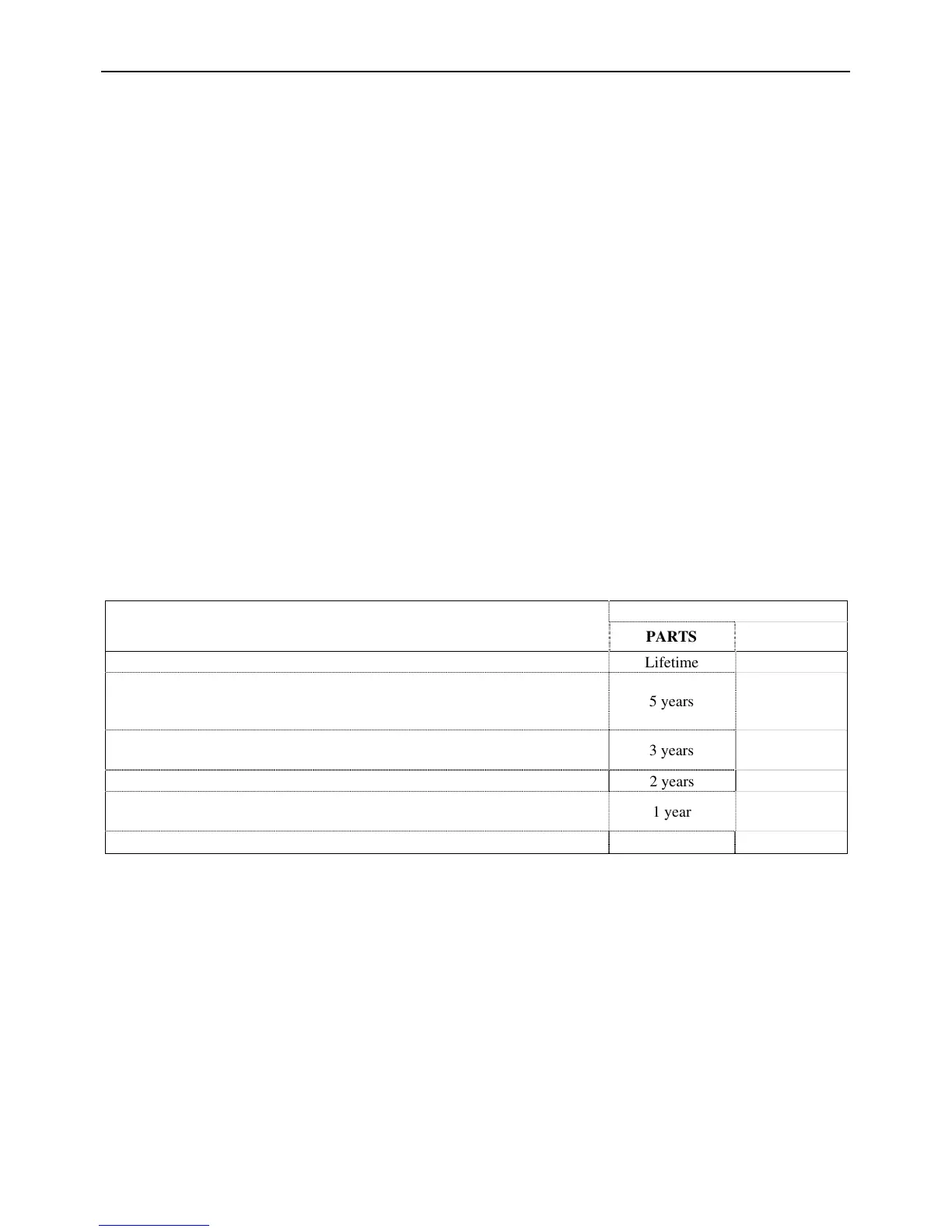replacement part. All parts and labour costs covered by this warranty are limited according to the table below.