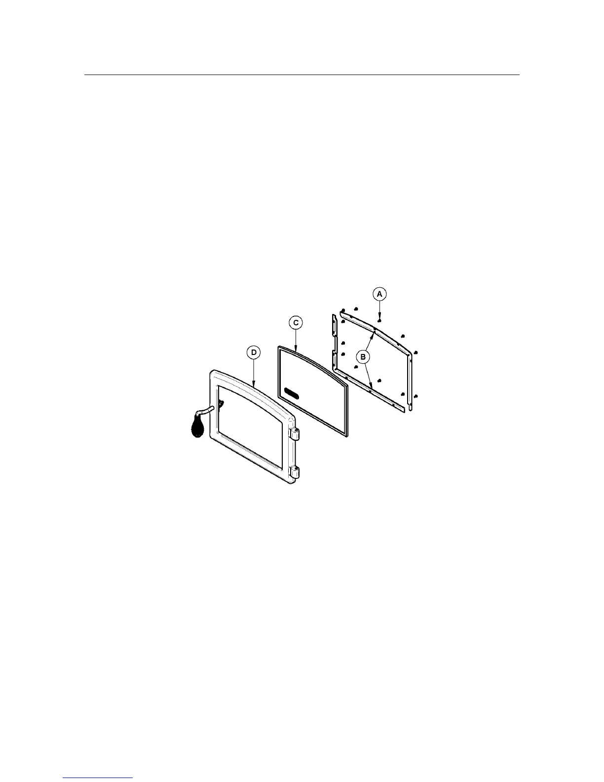 glass. Reinstall the glass, being careful to centre the glass carefully in the door. Do not