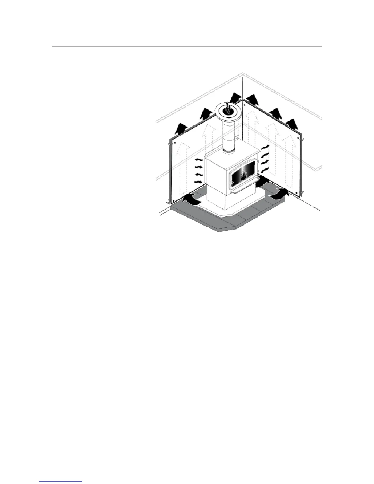 Clearance along the bottom of shield: minimum: 25 mm (1 in.) and maximum: 75 mm (3