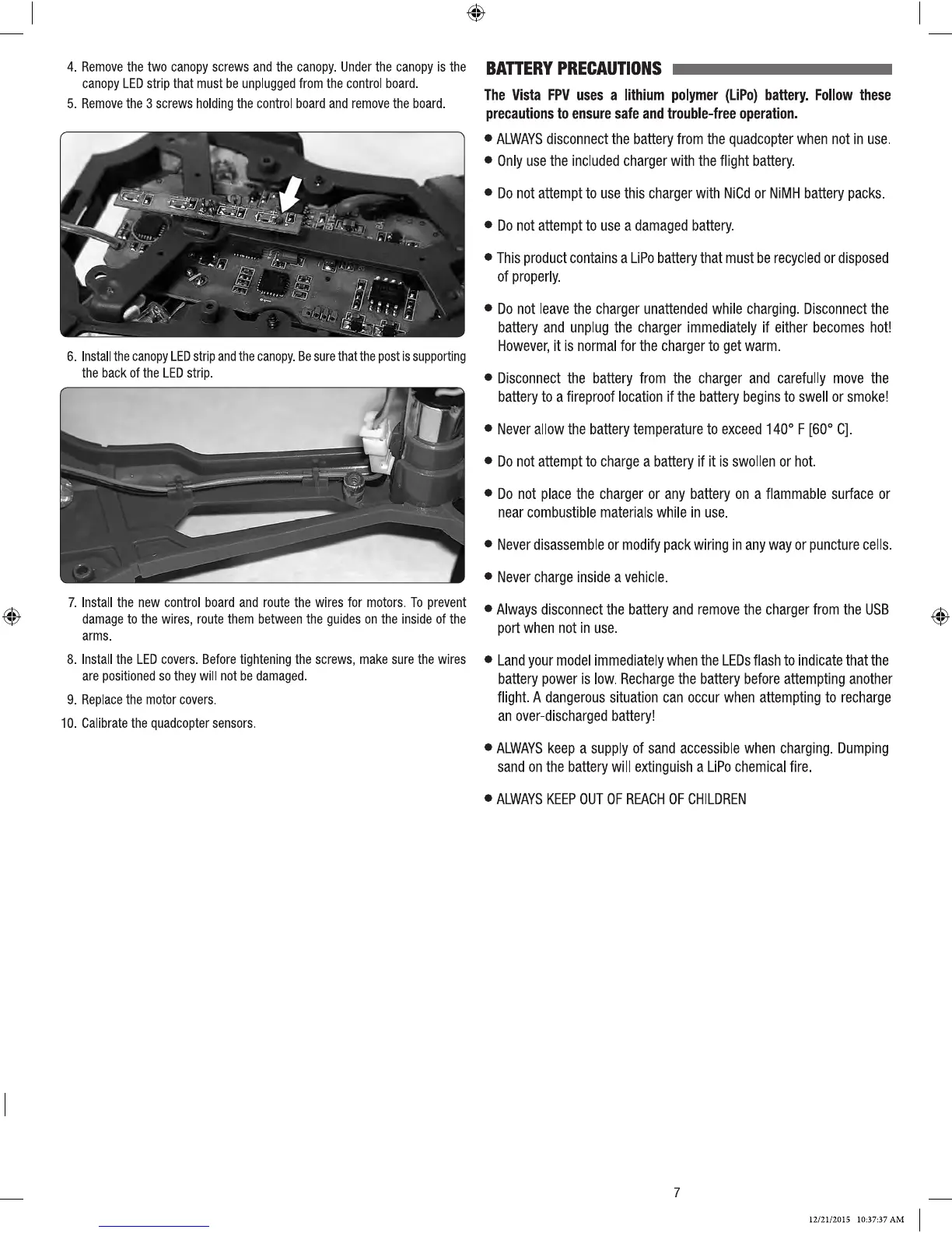 Dromida VISTA FPV - BATTERY PRECAUTIONS