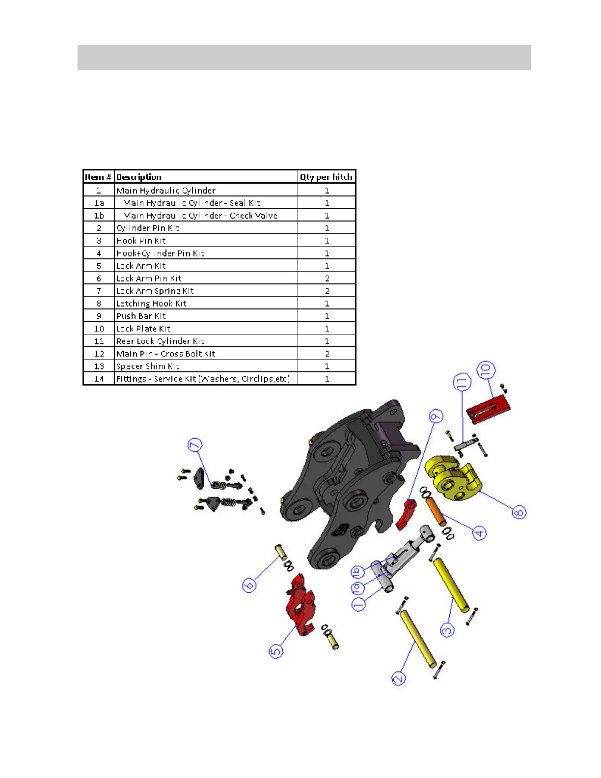 reference illustration drawing of spare parts for the coupler.