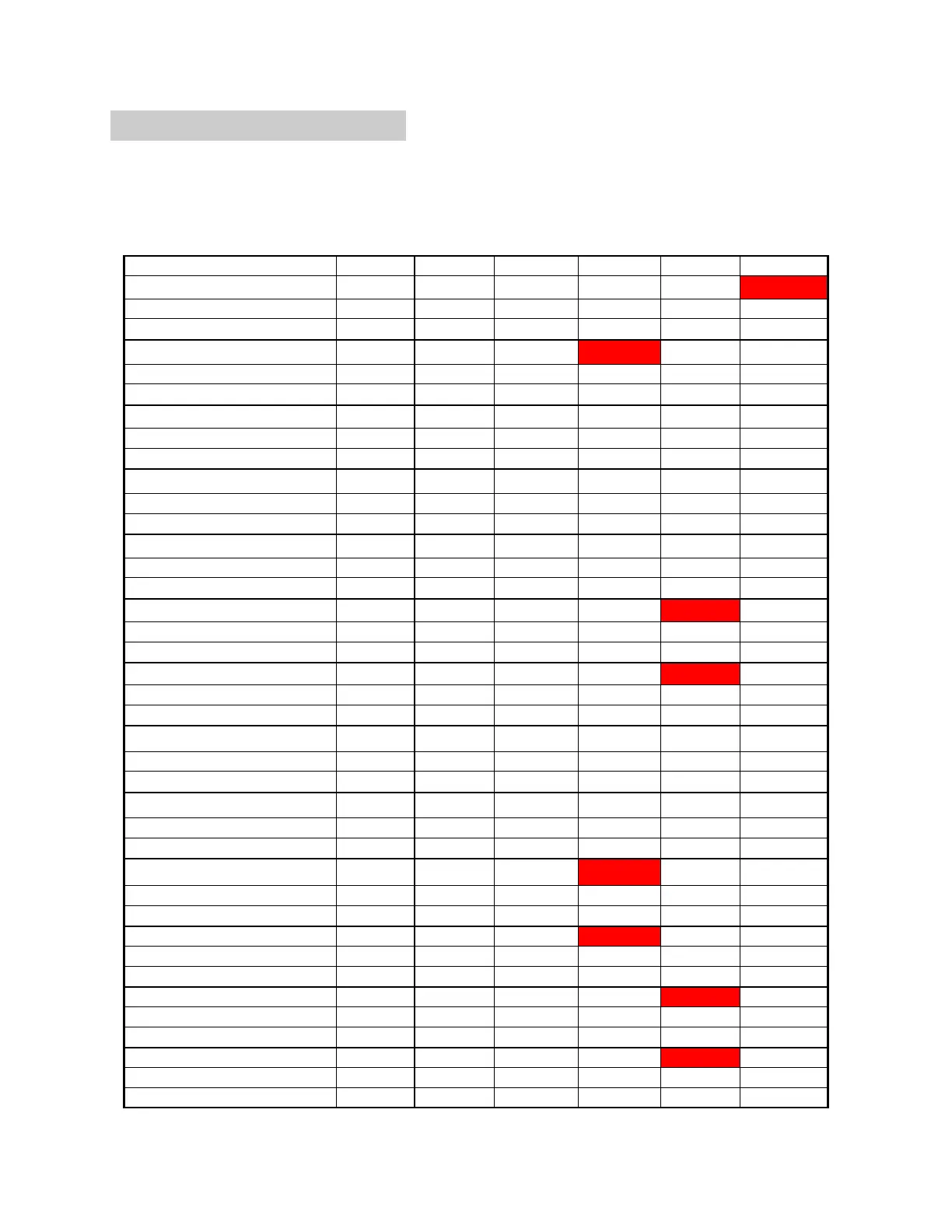 The table below is to be used as a guideline in the maintenance program of the