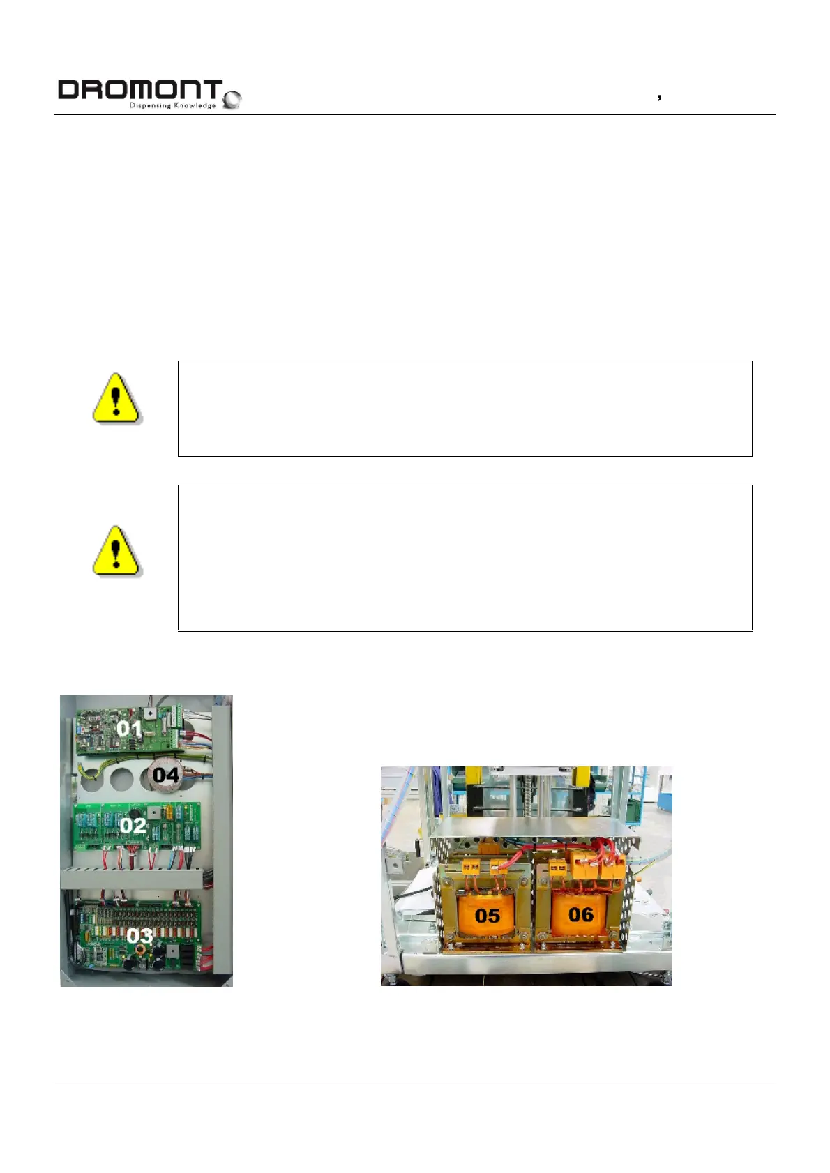 Three transformers supply the necessary voltage to the electronic boards and machine (